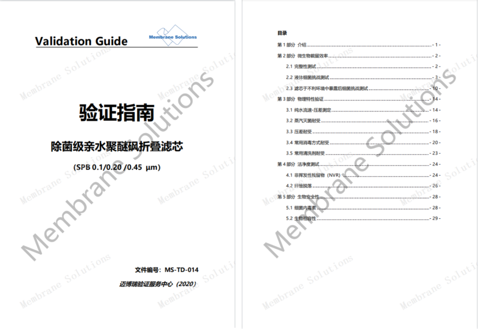 邁博瑞聚醚砜(PES)折疊濾芯是采用非對(duì)稱聚醚砜濾膜為濾材,能夠提供穩(wěn)定可靠的除菌、除顆粒的過濾性能,具有超低的蛋白吸附及溶出/析出水平,孔徑分布均勻、出色的細(xì)菌截留能力,出色的高初始通量,且邁博瑞除菌級(jí)濾芯建立了完整性數(shù)值與細(xì)菌挑戰(zhàn)進(jìn)行關(guān)聯(lián),可為客戶提供一整套的驗(yàn)證指南服務(wù)。